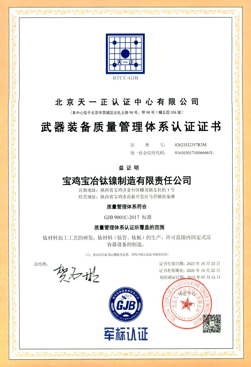质量管理体系认证证书